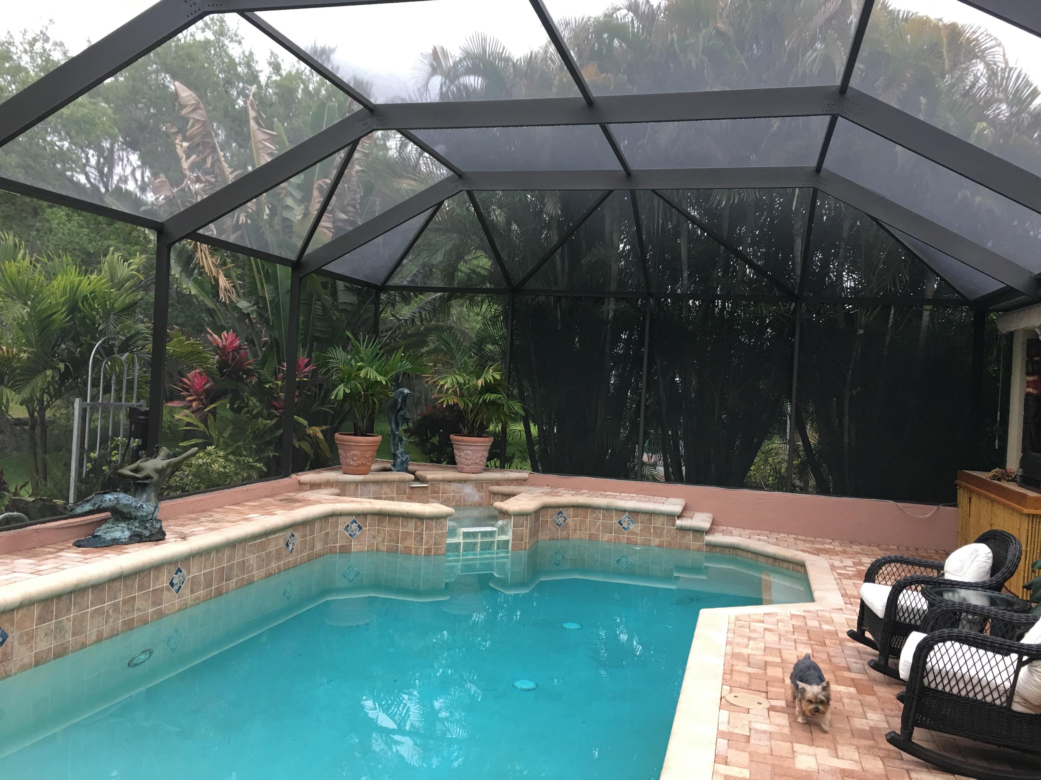 Pool Enclosure Refurbishing and Re-Painting Screen Repair & Pool Cage Re-Screening Pool Cage Maintenance Services Complete Home Painting Packages Metal Window & Sliding Glass Door Painting & Refurbishment We paint pool cages, houses,pool decks, windows, doors and more.